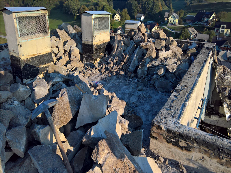 Sanacija dotrajane ravne strehe na enem od stanovanjskih blokov v Podlubniku, Škofja Loka.