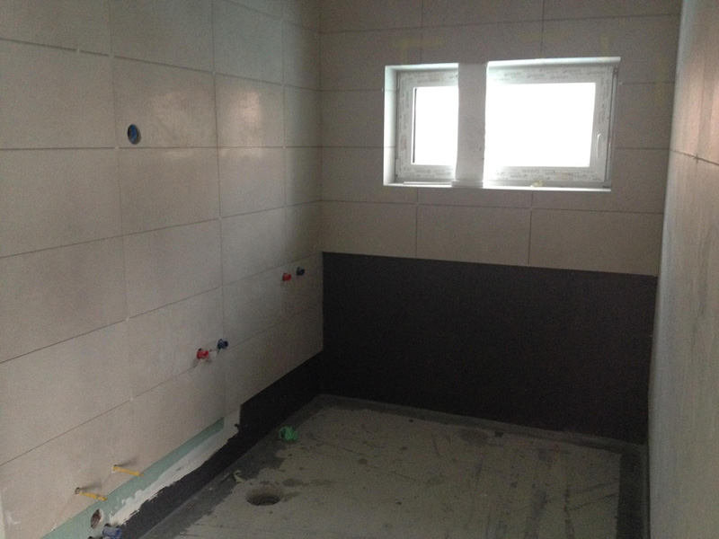 V novem več stanovanjskem objektu so za tesnjenje pod keramičnimi oblogami uporabili Köster BD Sistem. Kjer je bilo potrebno so najprej nanesli Köster BD 50 Primer, nato pa še dva sloja Köster BD 50. V prvi sveži sloj so na stikih (tla/stena, stena/stena) vgradili Köster BD Flek trak K-120. Na tako pripravljeno in zatesnjeno podlago so položili keramiko.